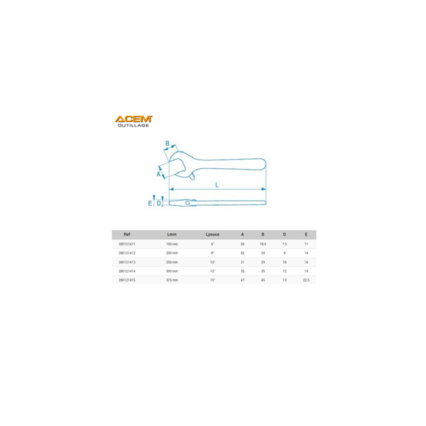 La clé à molette 10 pouces ACEM est l'outil polyvalent par excellence pour tous vos travaux de plomberie et de mécanique. Dotée d'une échelle graduée en millimètres, elle permet un réglage rapide et précis de l'ouverture des mâchoires. Sa structure en acier forgé garantit une robustesse à toute épreuve pour vos serrages les plus exigeants.