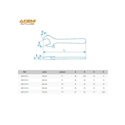 La clé à molette 8 pouces ACEM est l'outil polyvalent par excellence pour tous vos travaux de plomberie et de mécanique. Dotée d'une échelle graduée en millimètres, elle permet un réglage rapide et précis de l'ouverture des mâchoires. Sa structure en acier forgé garantit une robustesse à toute épreuve pour vos serrages les plus exigeants.