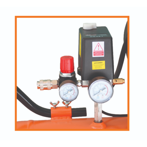 Sécurité totale : Valve de sécurité, manomètre de contrôle et régulateur de pression précis.
